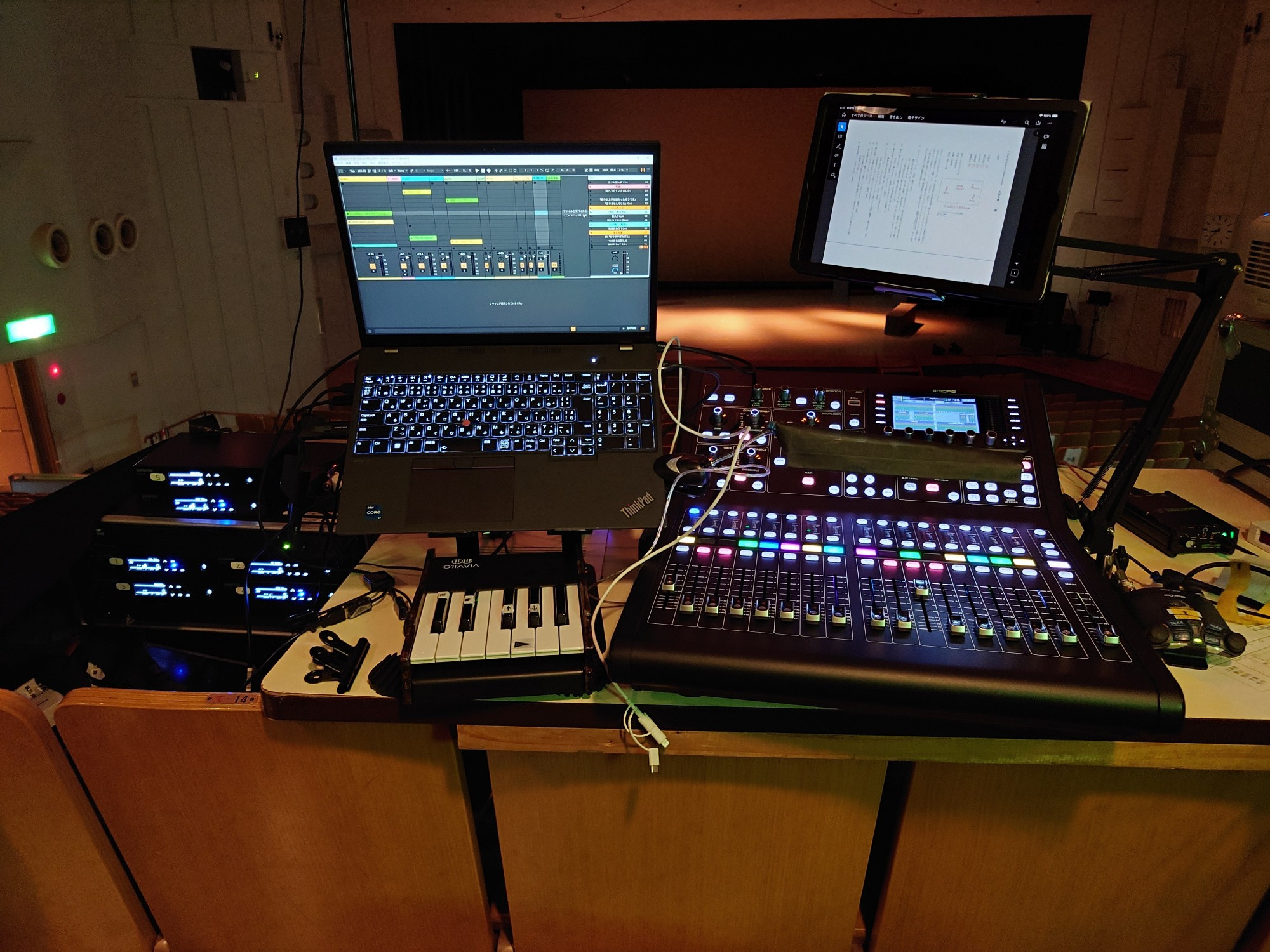 | Midas M32R Live | 1 | 現在うちの主力のミキサーです。ステージボックスDL16もあって、客席数百人規模のホールにも対応できますし、DN9630もあって、PC再生・録音の二重化も簡単です。録音はさらにSDカードに直接もできます。X-Touchでフェーダー本数を拡張もできます。 |