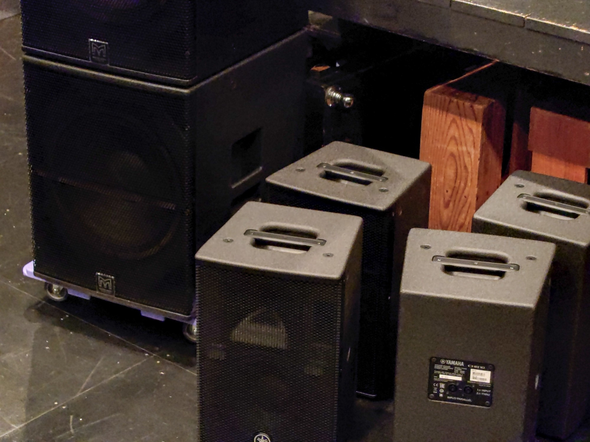 | EV Sb122 | 2 | 400W(連続) 1200W(ピーク) 12インチのサブウーハーです。会館で借用するSX300と組み合わせたり、X8と組み合わせたり。しっかりパワーをかけてチューニングすれば、12インチといえどもローエンドもわりと鳴ってくれます。 |