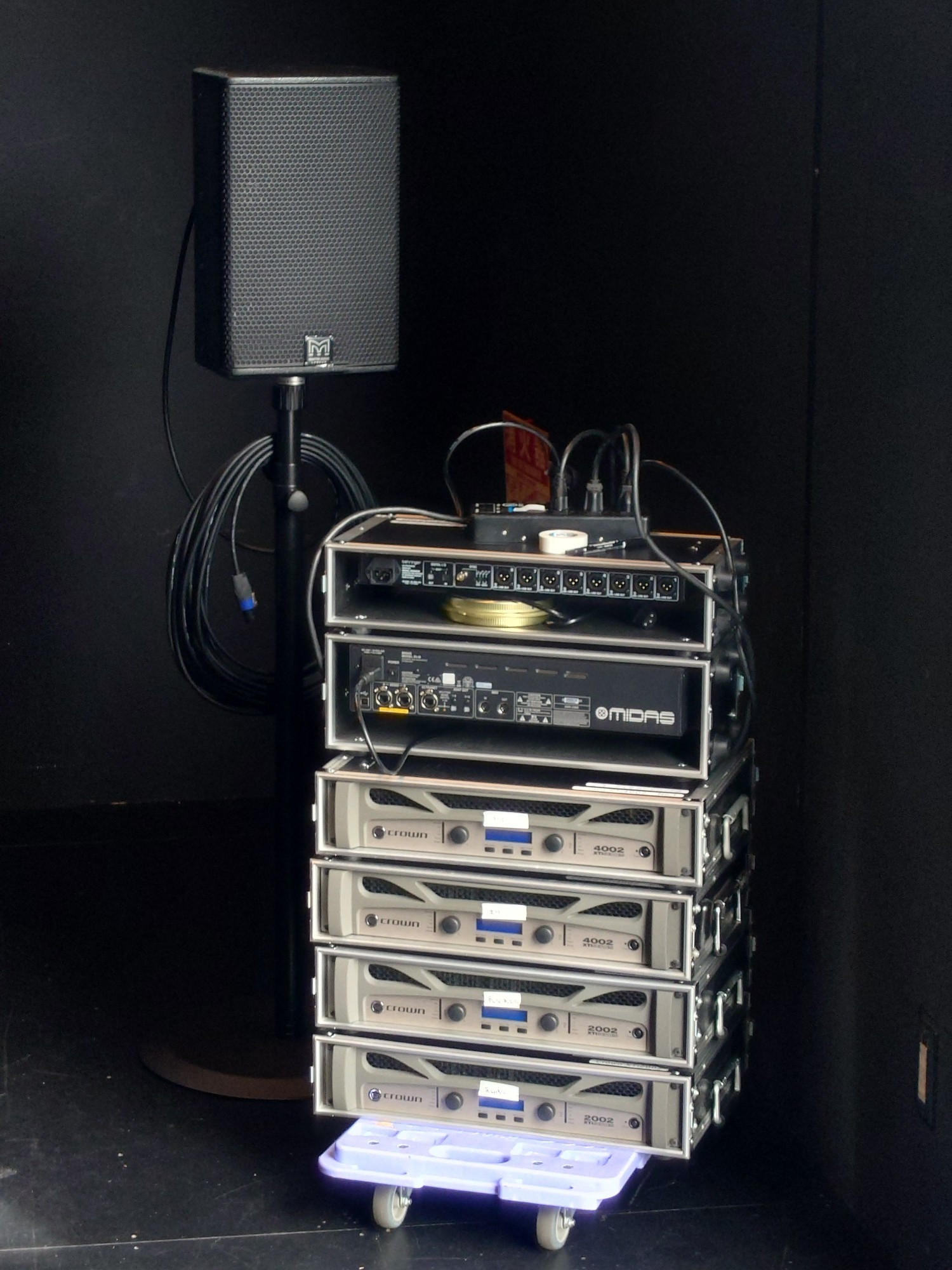 | スピーカースタンド | 4 | 黒色。アルミ製の軽いスピーカースタンドです。会場に銀色のよりも美術的に良い、というときによく出ます。 |